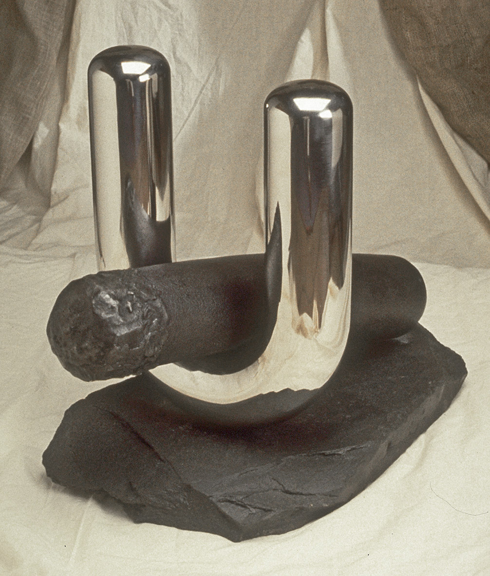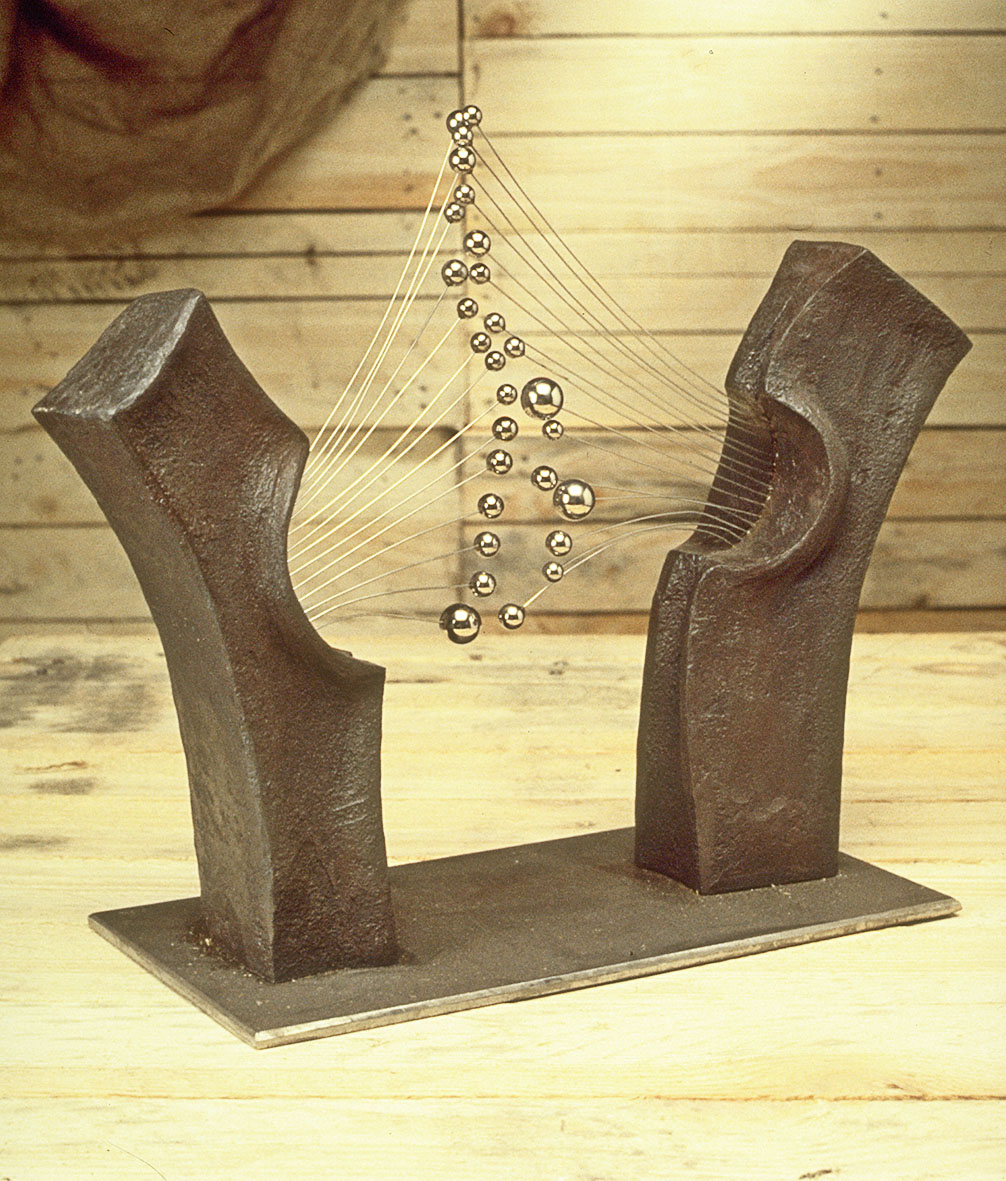 Create a work which encapsulates those senses which are in addition to the visual. The purpose was to utilise qualities which are inherent in steel and iron, but rarely explored. Tactile and aural qualities appeal particularly to those who are visually impaired: but they are also aspects encountered intuitively by the viewer. The design should seek to expand visual appreciation of objects by offering at least one other sensory experience in the observer’s interaction with the object