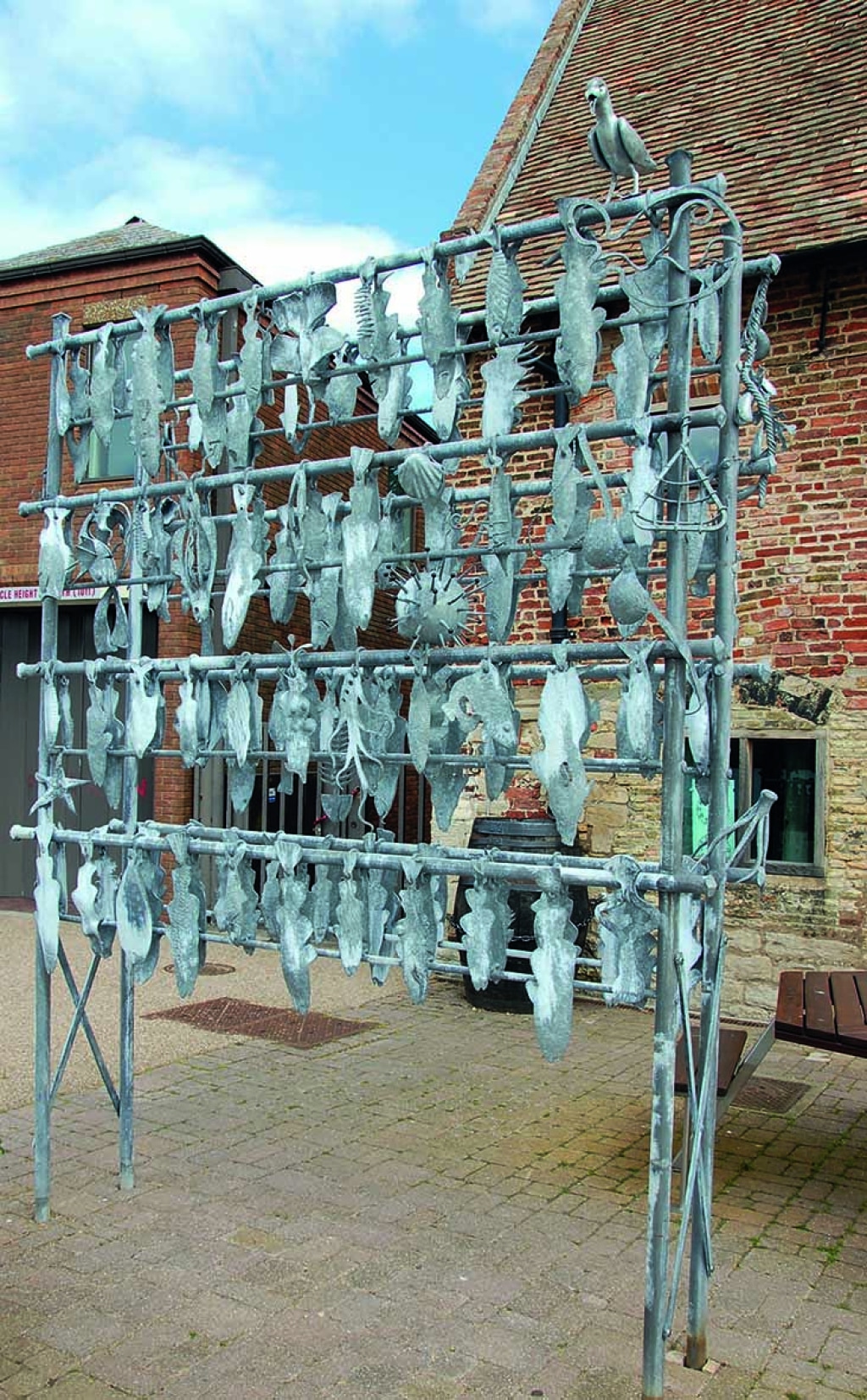 Nigel Barnett was approached by Sheena Carman, the King’s Lynn Arts Officer, to come up with an idea for a sculptural piece to be displayed on the quayside in celebration of the Hanseatic League of Ports, of which King’s Lynn is one. Negotiations took place with the help of Terry Clark, and it was decided the project could be incorporated in the BABA 2009 AGM. Bethan Griffiths researched the town’s history, and the concept of a fish rack was born, as the quayside had been used for fish drying since the Middle Ages.
