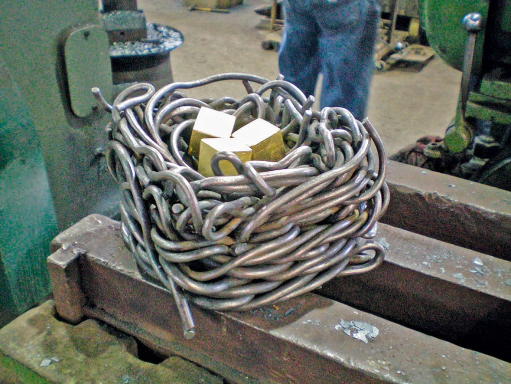 The theme of the weekend was of course hot rolling of pretty well anything twisted minds could come up with —mostly twisted bars as it turned out. We were hoping we could learn something about what can and cannot be done with a rolling mill, and we did.