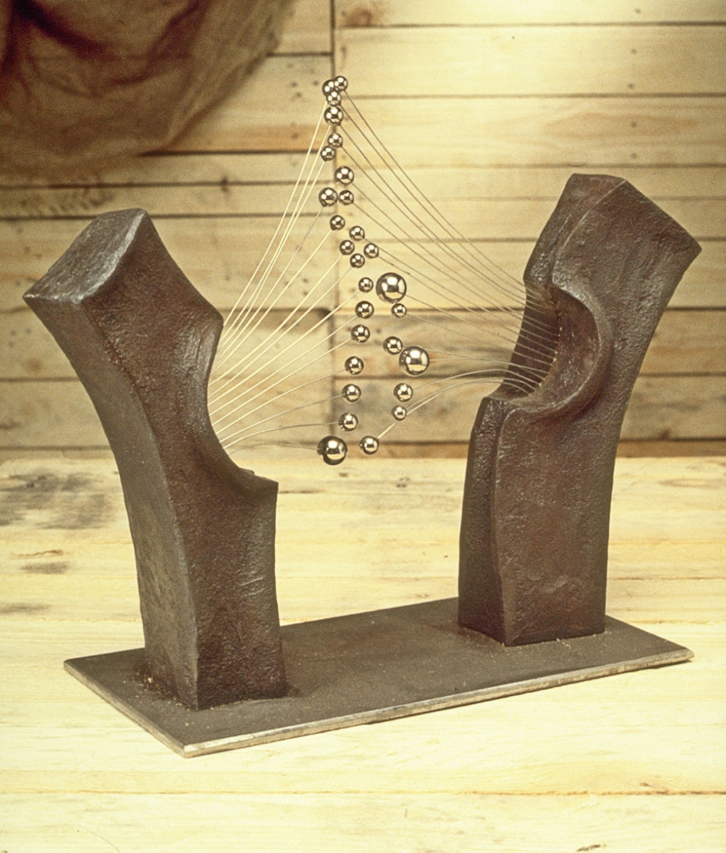 Create a work which encapsulates those senses which are in addition to the visual. The purpose was to utilise qualities which are inherent in steel and iron, but rarely explored. Tactile and aural qualities appeal particularly to those who are visually impaired: but they are also aspects encountered intuitively by the viewer. The design should seek to expand visual appreciation of objects by offering at least one other sensory experience in the observer’s interaction with the object
