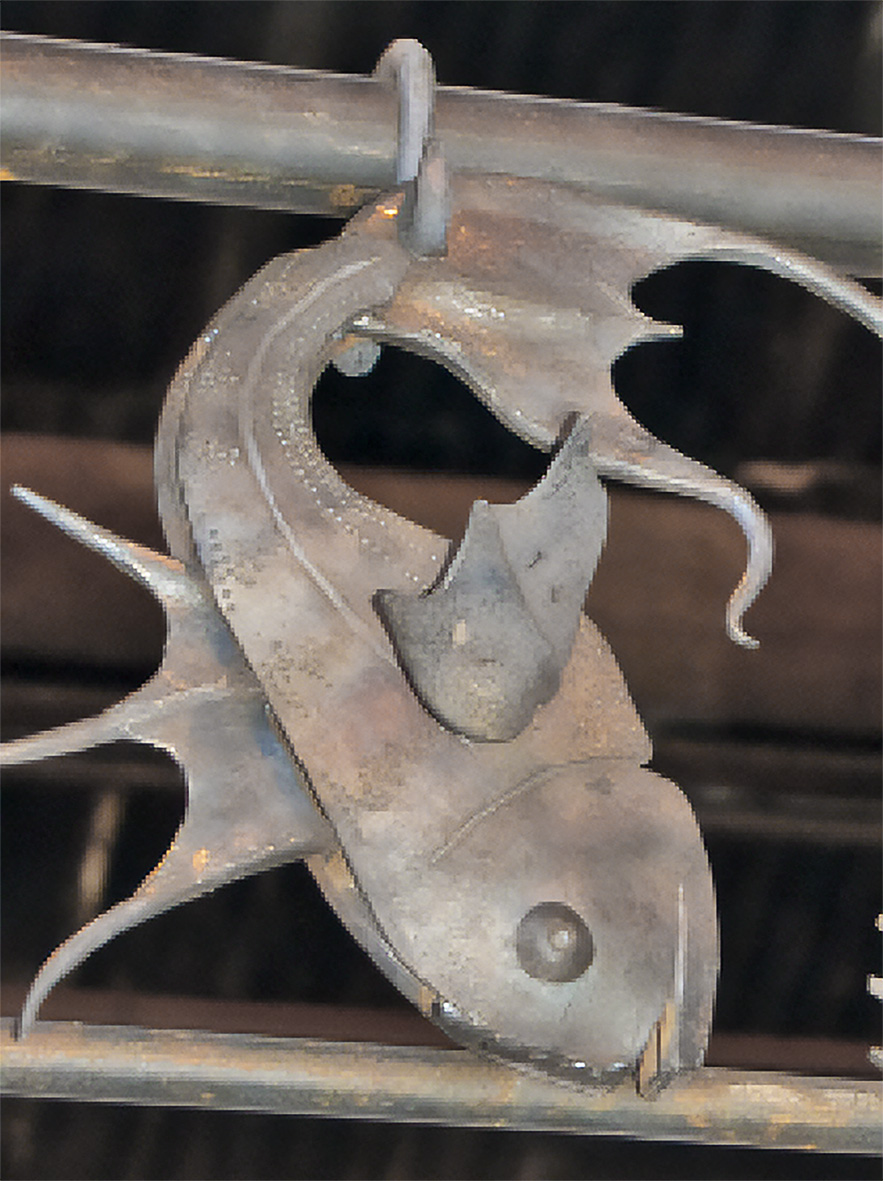 By Sunday afternoon, both drying racks had been completed and many of the hooks fixed in place. Seeing the racks upright and loaded with the by now huge numbers of fish was really satisfying. It’s definitely one of those pieces where the more you look, the more you see.